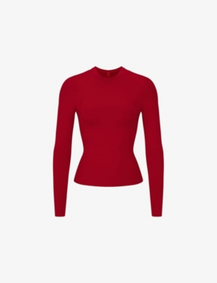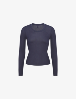 Round-Neck Long-Sleeve Stretch-Cotton Jersey Top