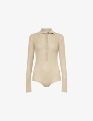 Solana Polo-Collar Wool, Silk and Cashmere-Blend Knit Bodysuit