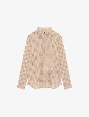 If you're partial to a fluid aesthetic, explore floral blouses from The Kooples dotted with subtle ditsy prints and balloon sleeves. When it comes to creating an easy look that lends itself to partywear, The Kooples's silk shirts often fall in a billowing silhouette, and they are strikingly contemporary when they come in shades of acid yellow. In the mood to revitalise your work wardrobe? Timeless monochromatic options for the office are plentiful. Why not select a bright white cotton-poplin blouse that'll pair easily with jeans or a skirt? We're particularly fond of the tactile fabrics used throughout the range, such as soft corduroy and airy chiffon.