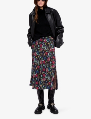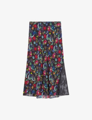 Julen Paisley-Print Lace-Embroidered Satin Midi Skirt- Discount price:$7,500.00
