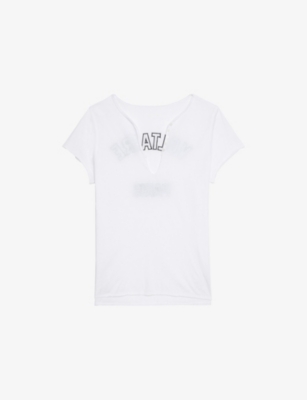 ZADIG&VOLTAIRE: Rhinestone-Embellished Short-Sleeve Cotton T-ShirtZADIG&VOLTAIRE: Rhinestone-Embellished Short-Sleeve Cotton T-Shirt