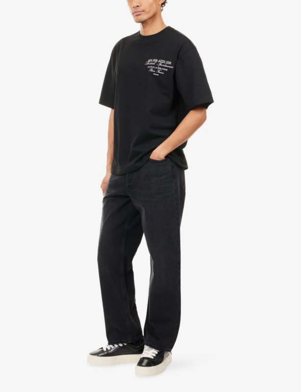 - Regular fit, mid-rise, tapered leg, elasticated waistband, belt loops, two slip pockets and two zip pockets at front, zip pocket and brand plaque at back