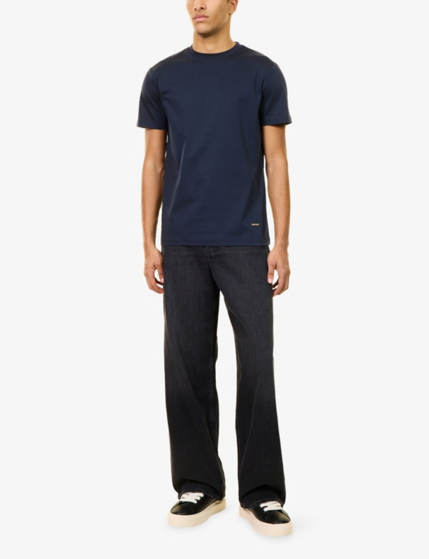 - Crewneck, short sleeves, graphic print at front and back, straight hem