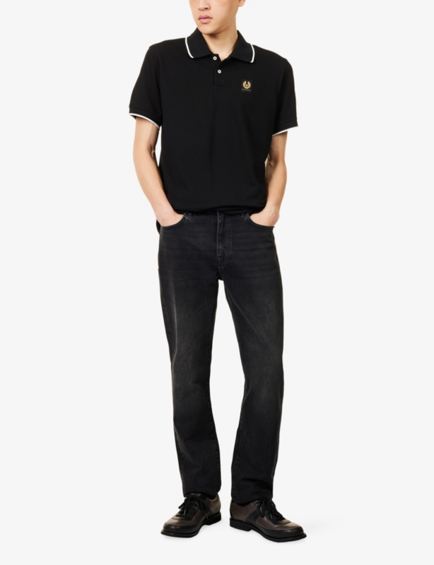 - Regular fit, polo collar, long sleeves, logo patch at chest