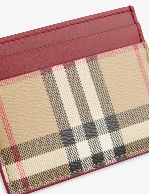- Rectangular shape, engraved branding plaque at flap front, slip pocket at back, all-over check print, texture, leather trims, gold-toned hardware, one main compartment, internal zip pocket and three slip pockets, six internal card slots and foiled branding, fully lined