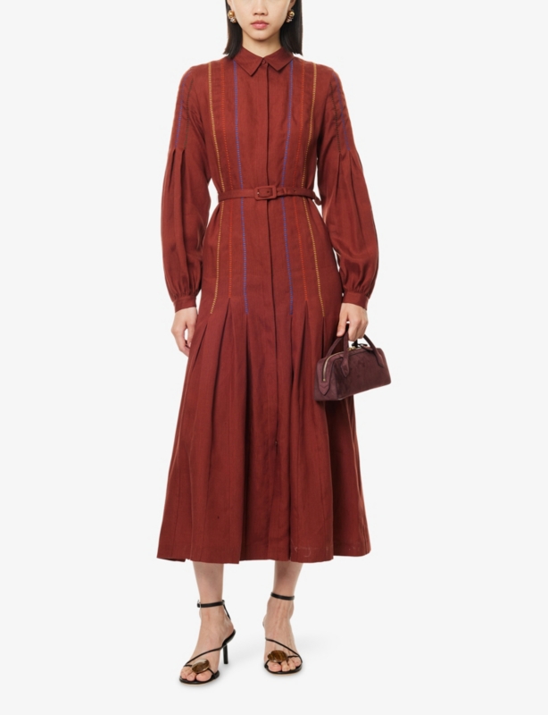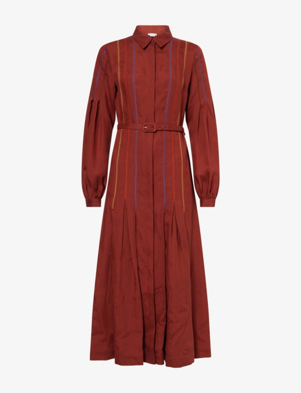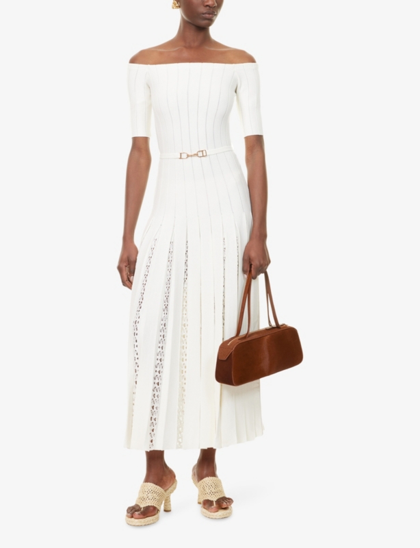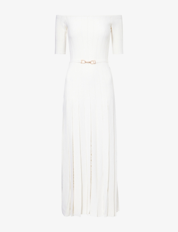 - Regular fit, round neck, sleeveless, belt at waist, ribbed knit, flared hem