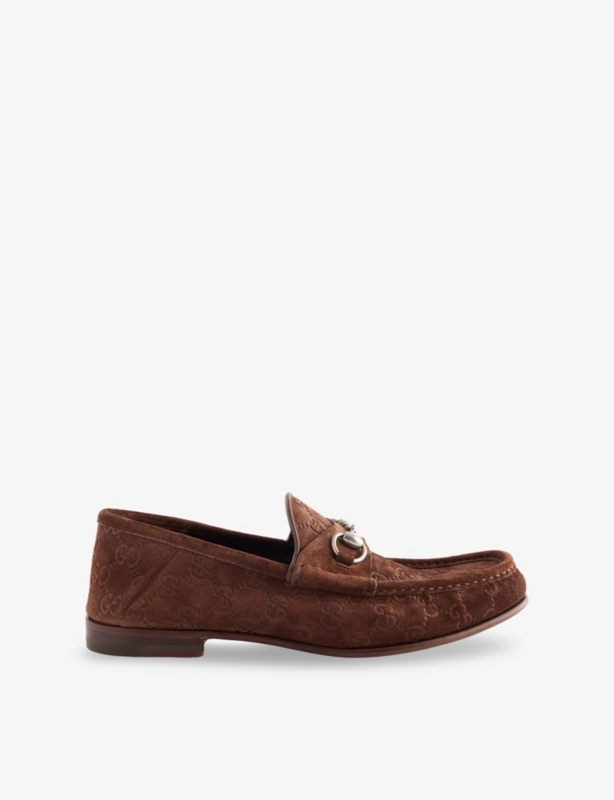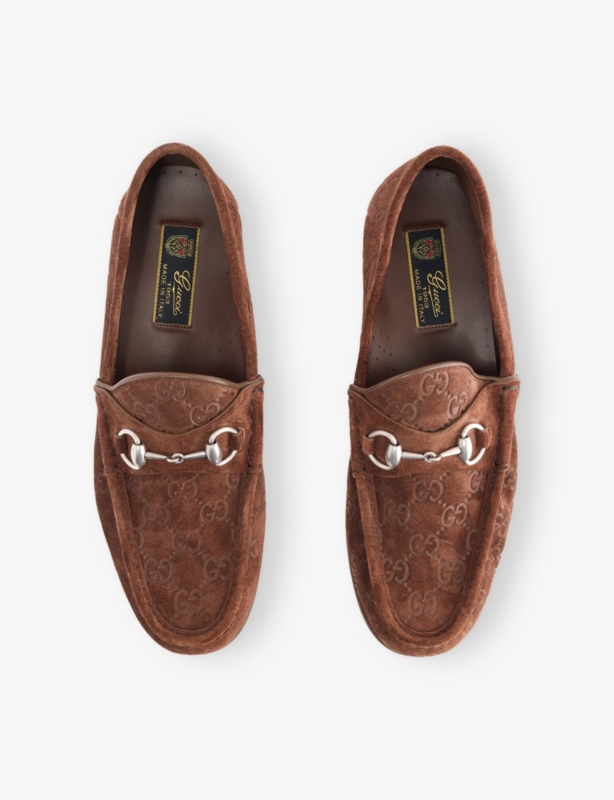- Closed almond toe, GG monogram on upper, penny stitching at the front