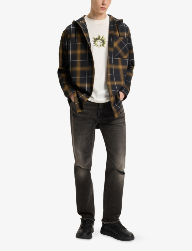 - Regular fit, short sleeves, brand plaque at front, ribbed trims