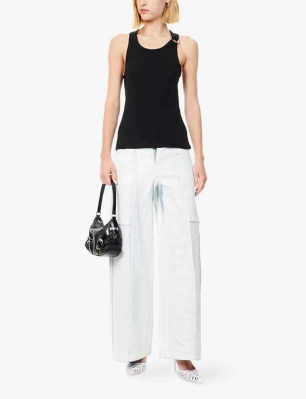- Slim fit, round-neck, short sleeves, brand patch at front, all-over ribbed