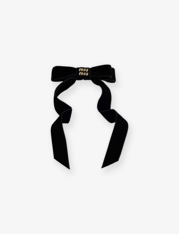 - Logo plaque at front, metal clip at back, fine crochet knit, gold-toned hardware