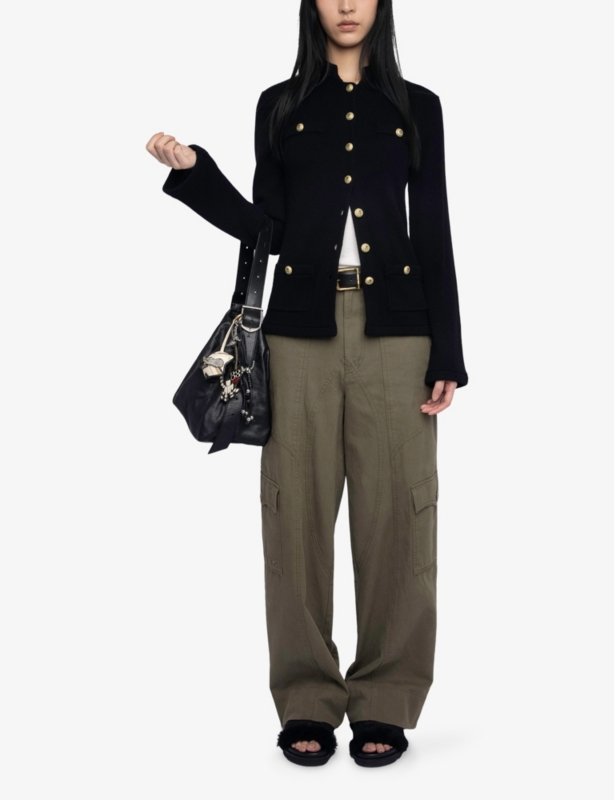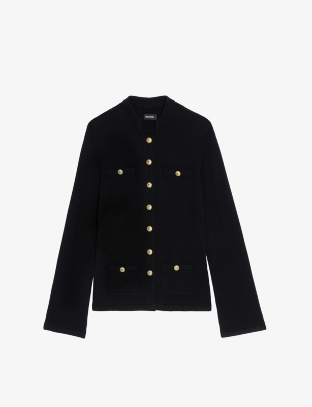 - Peak lapels, long sleeves, single breasted, padded shoulders, two flap pockets to the front, one interior pocket, single vent to the back