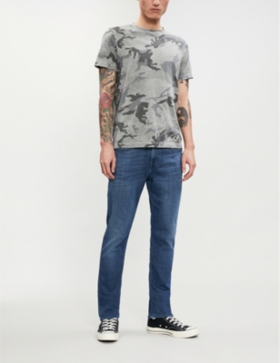 Brand-patch belt-loop regular-fit stretch-denim jeans