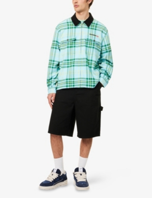 Check-Print Camp-Collar Cotton-Poplin Shirt