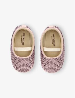 Baby Swarovski Crystal-Embellished Leather Ballerina Pumps