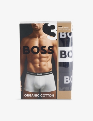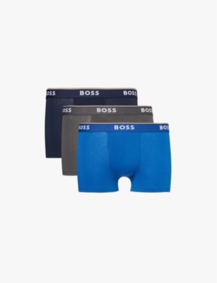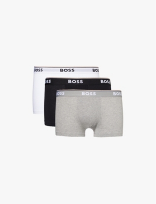 BOSS ONE x David Beckham Logo-Waistband Pack of Three Stretch-Cotton Trunks- Price:$54.00