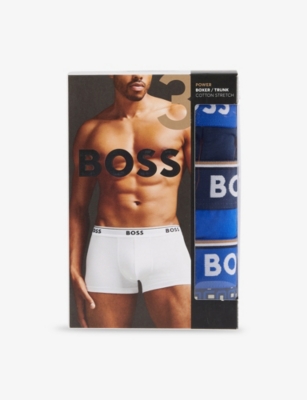 BOSS ONE x David Beckham Logo-Waistband Pack of Three Stretch-Cotton Trunks- Price:$54.00