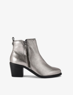 Silver 2 Wide-Fit Leather Heeled Ankle Boots- Discount price:$107.00