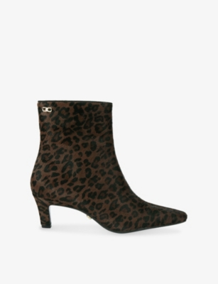 Moda Leopard Heeled Leather Ankle Boots- Discount price:$118.00
