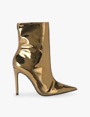 Strut heeled patent-faux leather ankle boots- Discount price:$83.00
