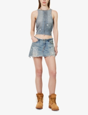 Deconstructed denim mini skirt