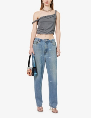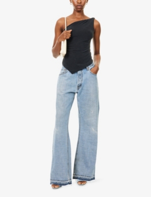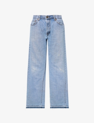 Deconstructed-waist straight-leg mid-rise denim jeans