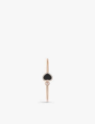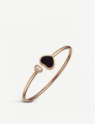 Happy Hearts 18ct rose-gold, 0.19ct round-cut diamond and onyx bangle bracelet- Price:$4,070.00
