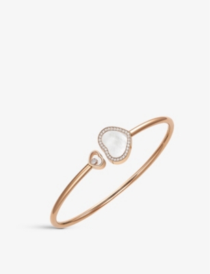 Happy Hearts 18ct rose-gold, 0.05ct diamond and mother-of-pearl bangle bracelet- Price:$3,115.00