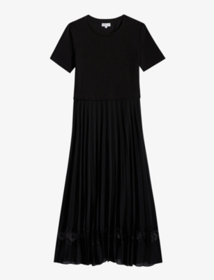 Striped-Trim Pleated Stretch-Knit Mini Dress- Discount price:$200.00