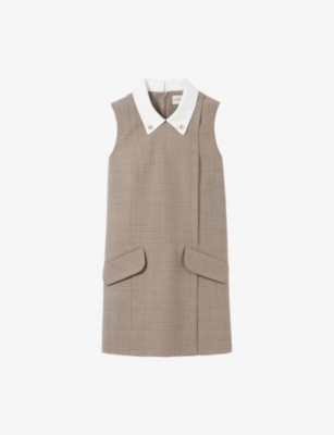 Checked Contrast-Collar Wool-Blend Mini Dress- Discount price:$315.00
