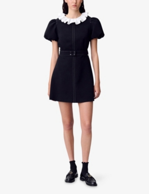 Ruffle-Collar Short-Sleeved Stretch-Woven Mini Dress- Discount price:$240.00