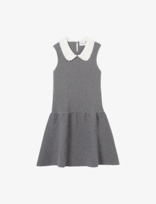 Sleeveless Contrast-Collar Stretch-Cotton Skater Dress- Discount price:$200.00
