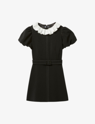 Ruffle-Collar Short-Sleeved Stretch-Woven Mini Dress- Discount price:$240.00