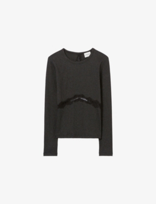 Lace-Embroidered Long-Sleeve Stretch-Knit T-Shirt- Discount price:$108.00