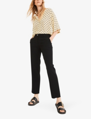 Searching high and low for flattering black women's pants? We suggest a tapered pair in a stretchy wool blend. Opt for double waistbands for a structured feel, or go for a relaxed fit to keep things casual. Cut a sharp figure in slim-fitting styles, fitted with concealed fastenings that maintain the label's minimalist vision. To add some vintage allure to your ensemble, consider flares in fluid draped fabric - they'll work well with blazers as well as going-out tops.
