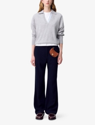 Frilled-Trim Flared-Leg Mid-Rise Stretch-Knit Trousers- Discount price:$157.00