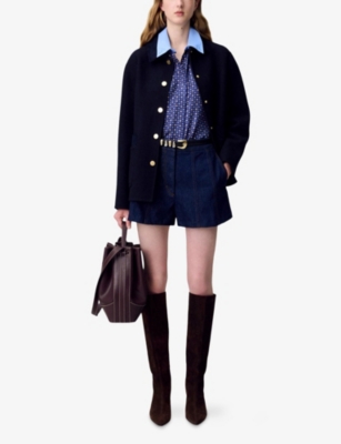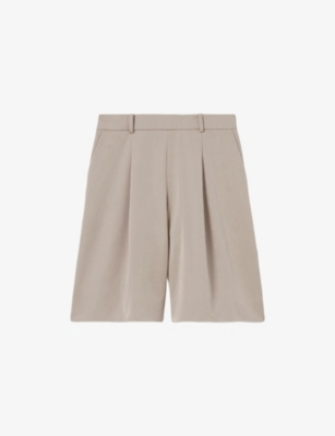 Pleated-Front Wide-Leg High-Rise Woven Shorts- Discount price:$157.00