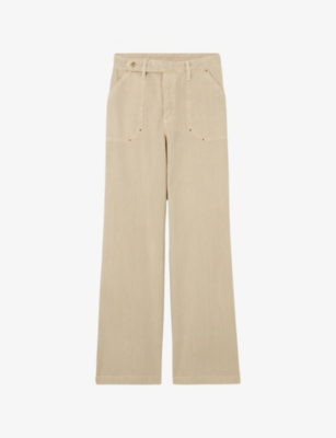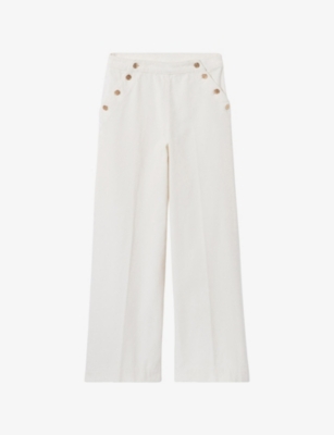 Button-Embellished Wide-Leg Mid-Rise Cotton-Corduroy Trousers- Discount price:$179.00