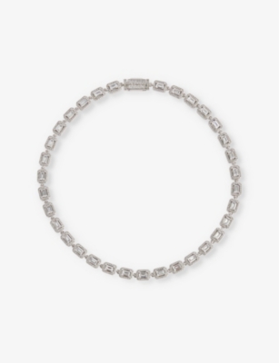 Tennis 18ct White Gold-Plated Stainless Steel, Brass And Pavé-Stone Bracelet- Price:$179.00