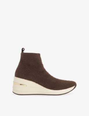 In this curation of Dune ladies' sneakers, you'll find subtly concealed wedge-shaped soles with a sporty sensibility. Opt for mid-height heels topped with knitted textile uppers and metal-toned hardware, and invest in sculptural silhouettes studded with crystals and shimmering embroidered motifs. Streamlined mesh pieces feel breathable and cool, while chunky designs with adjustable toggle laces are quick and easy to slide on.
