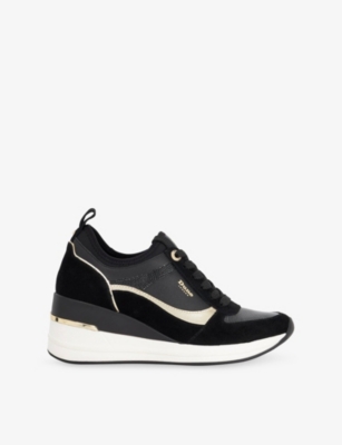 Sporty sneakers which give you an added height boost? You don't need to ask us twice. Dune women's wedge sneakers are a hybrid between platforms. Expect contrasting panels where faux-leather, faux-suede, metallic and croc-embossing collide.