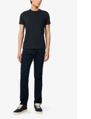 In this Emporio Armani menswear selection, browse fresh pieces for your casual wardrobe. Think versatile denim including jeans in a variety of washes, made with cotton and low-rise fits for comfort. T-shirts come in neutral tones like midnight black, navy blue and pure white, meaning they'll slot easily into your daily outfits. Some come adorned with statement logos and graphics, while others have subtle embroidery.