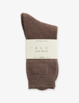 Brushed mid-calf polyamide and wool-blend knitted socks