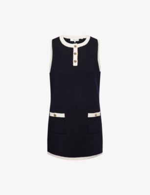 Mixed Sleeveless Wool-Blend Knit Mini Dress