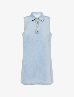 City Shift Polo-Collar Cotton-Blend Denim Mini Dress