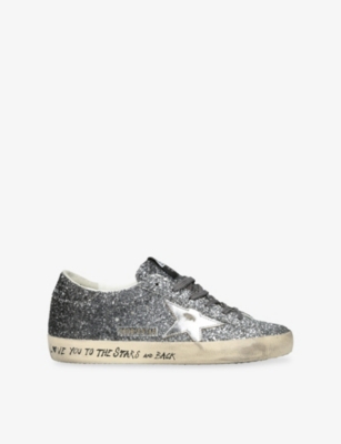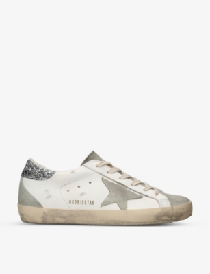 The label's star logo patch is another mainstay of this collection, and you'll often find the label's name embossed or embroidered on uppers and heels. Expect to see branded metallic hardware, too, marking the sneakers out as distinctive Golden Goose creations. The colour palette leans towards sleek monochrome or grey, but you'll also find funky leopard and snakeskin prints, as well as all-over glitter finishes.