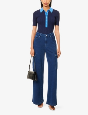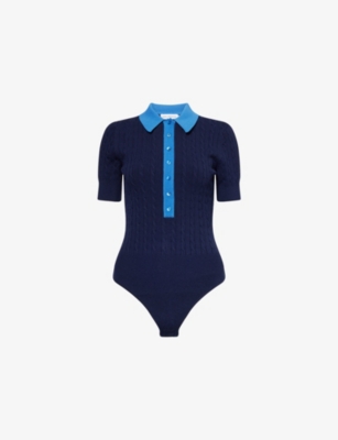 Cable-Knit Polo-Collar Knitted Bodysuit