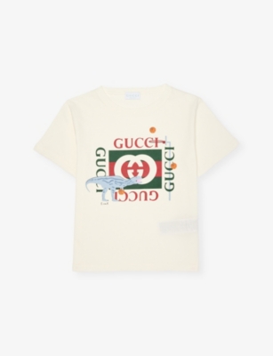 Explore our selection of Gucci clothes for boys, from printed T-shirts and shorts to belts bearing the iconic double-G buckle. The brand's heritage stripe is parallel green bands divided by a single red line, a symbol that's been in use since the 1940s. You'll find it everywhere from school backpacks to cosy joggers and knitwear.