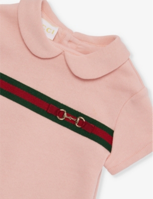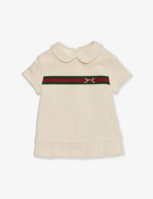 Gucci was founded in the 1920s as a manufacturer of premium leather goods. With over a century of fine Italian craftsmanship behind it, Gucci remains a firm fashion icon and its clothing collections are highly coveted across the globe. Look out for the brand's iconic jacquard green and red stripe and its GG monogram - inspired by the founder's initials - throughout our range. Alongside the label's emblems, you'll spot cheerful fruit and floral prints, contrasting stripes and Peter Pan collars to recreate Gucci's unmistakably eclectic style for a younger audience.
