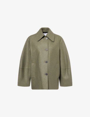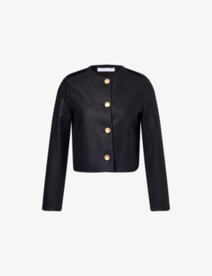 Cropped Funnel Pressed Wool Jacket