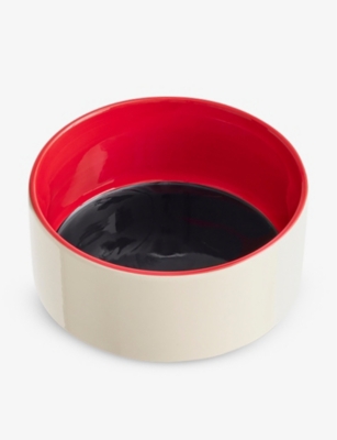 Colour-block large round stoneware dog bowl 20.8cm x 7cm